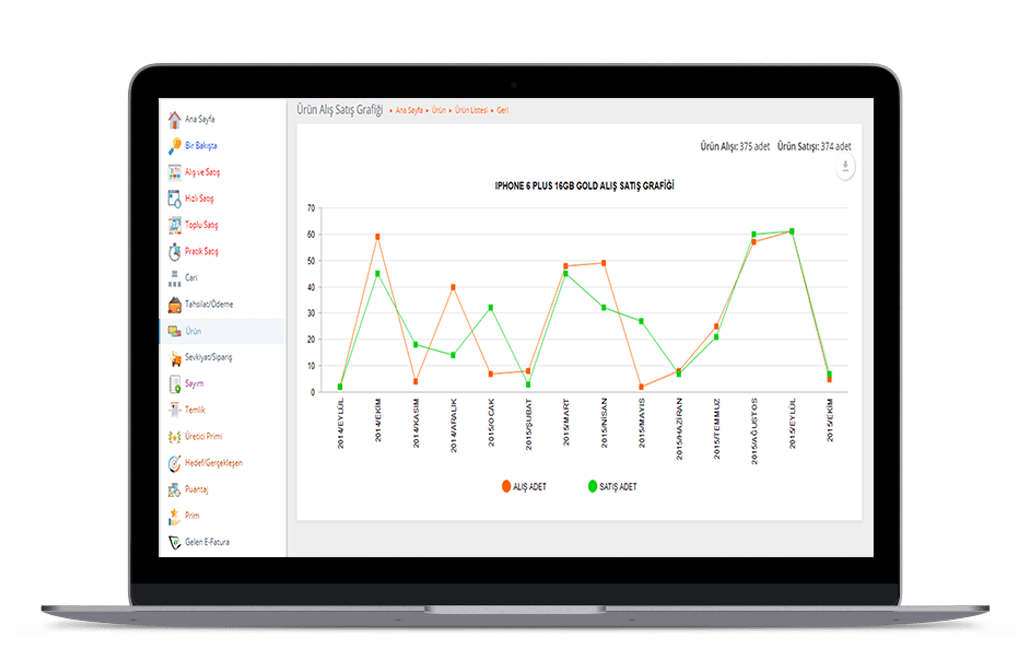 Ciro ve karlılık raporlarına online ulaşabilir, kategori bazlı ürün satışlarınızı takip edebilirsiniz.