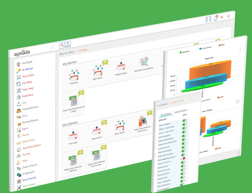 Kolaylıkla satış kaydınızı oluşturabilirsiniz. Klasik satış, pratik satış, hızlı dokunmatik satış ve toplu satış menüleri altındaki 4 farklı satış yönetiminden birini seçebilirsiniz.